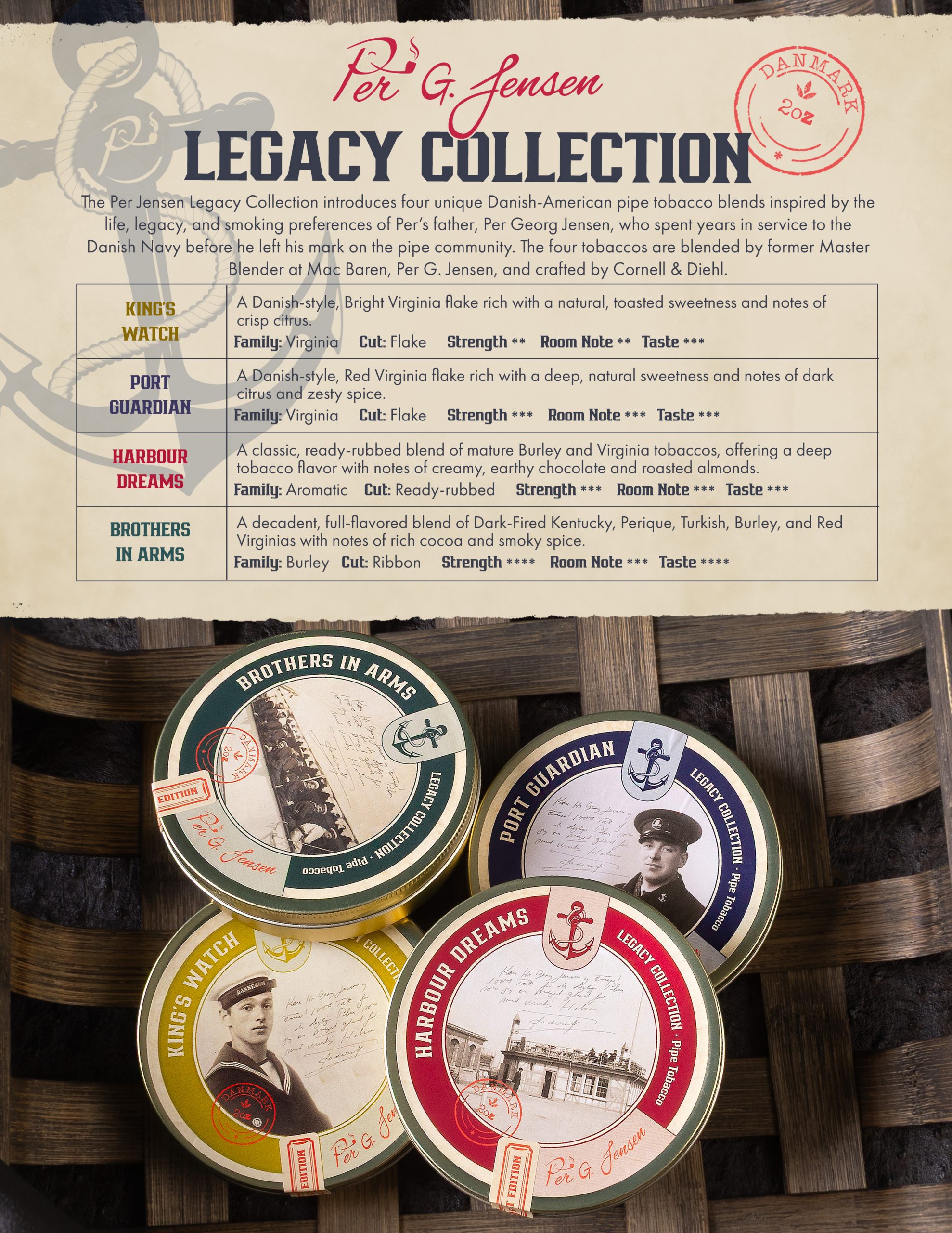 Welcome to The Pipes Magazine Radio Show Episode 676. Our featured interview tonight is with Per George Jensen. Per is like an executive chef of tobacco. He never runs out of new tasty concoctions. He also always seems to land on his feet. In case you don’t know, he spent many years at Mac Baren and later created blends for Sutliff as well. With the buyouts by STG, which have already been discussed at length, Sutliff is gone, and Mac Baren as we knew it, will soon be too. The good news is that the new Per Jensen Legacy Collection by Cornell & Diehl comes out next week – September 2. The four blends are tributes to Per’s father, Per Georg Jensen, a man who once wore the proud uniform of the Danish Navy. At the top of the show we’ll have an Ask the Pipemaker segment with renowned pipe artisan Jeff Gracik.