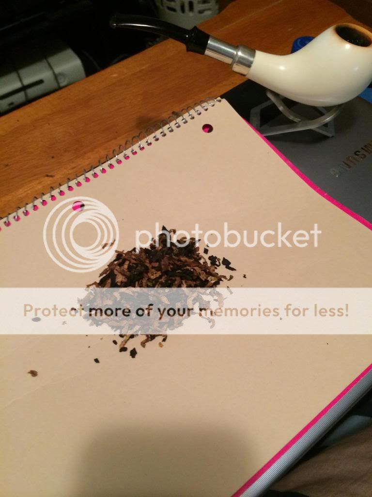 This is just a little informal opinion of this blend as I am not good at picking out distinct flavors. The moisture was very good out of the tin. The baccy was a little sticky but was easily broken up into a fine ribbon cut. I found some very dark strands along with some very light strands(some almost white). It smelled of hearty baccy I liked it my spouse not so much. I smoked this in my WGM DAN 98 meer and the bowl packed very easily. I packed it just slightly on the loose side.