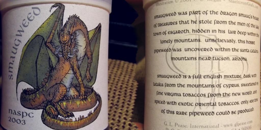 JFM also made three blends for this series called Treebeard, Shortcut to Muchsrooms, and The Ruins of Isengard but I have nerver seen them in tins. I believe these also preceded the Pease blends.