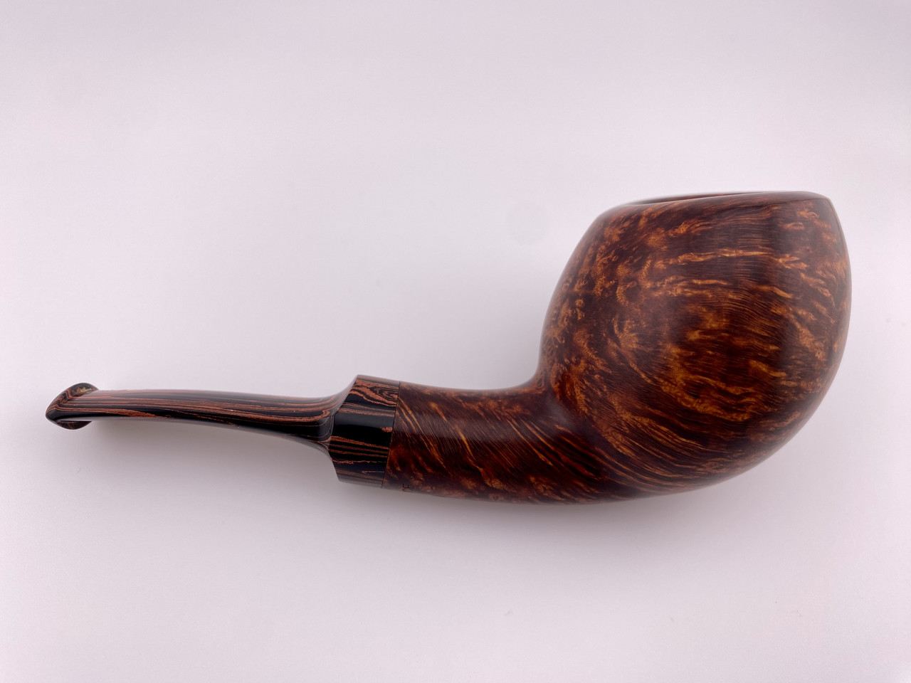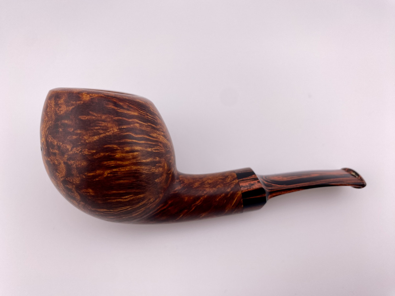 Estate Tonino Jacono, Rook grade, lovat. Hand Made in Italy. Solid masculine pipe with thick wall. This will be a great work horse with a comfortable saddle stem. This is a fantastic smoking pipe, just larger than I prefer these days. Solid stem with no tooth marks.